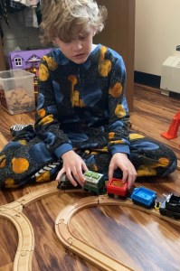 So I sat down, I waited, and I listened. And what I discovered was magical. Sure I didn’t learn what he thought my age was, or who his favorite superhero is. But I learned that in his imagination he makes trains fly. Not only that, he has a take off ramp for them and a separate landing strip. And he also knew the date… Which I don’t know how he knew that.