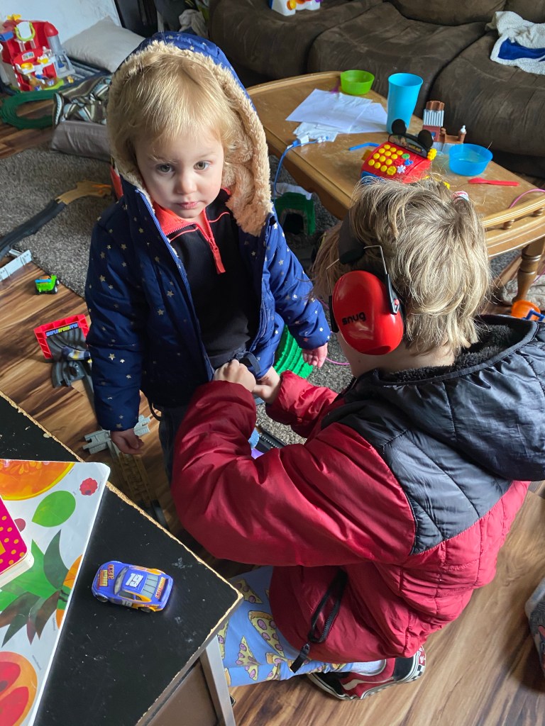 When Mr. C was a baby and would cry, if I could calm him with nursing Mr. L would come over and pat me and give me a look like, good job momma! Thank you for helping Mr. C stop being loud. When Little Miss A was a new born, Mr. L worried any time she cried and would run to me and ask me to help her stop crying. I could literally be making him a sandwich and he would rather me stop half way and go soothe his little sister. His baby sister could slap him in the face and he would ask me to help calm her! You get the picture, Mr. L didn’t like the loud sounds but learned to adjust and is now back to being one of the loudest of them.