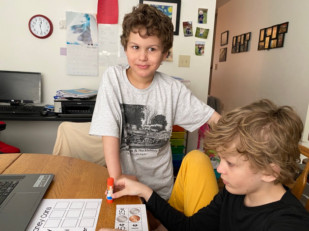 My husband and I feel lucky that our boys are so close in age because Mr. C pushes Mr. L to keep up with him verbally, socially, and just in general with life skills. Our oldest may spike in learning skills or have his ups and downs, but if he plateaus and Mr. C catches up, Mr. L naturally catches on and often gets nudged forward. There are things that Mr. L will have a difficult time learning and Mr. C is starting to see this, but Mr. C is still a natural teacher by example.